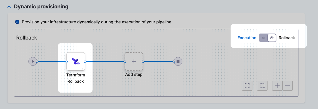 - The Rollback steps of a stage's Infrastructure, in Dynamic Provisioning: